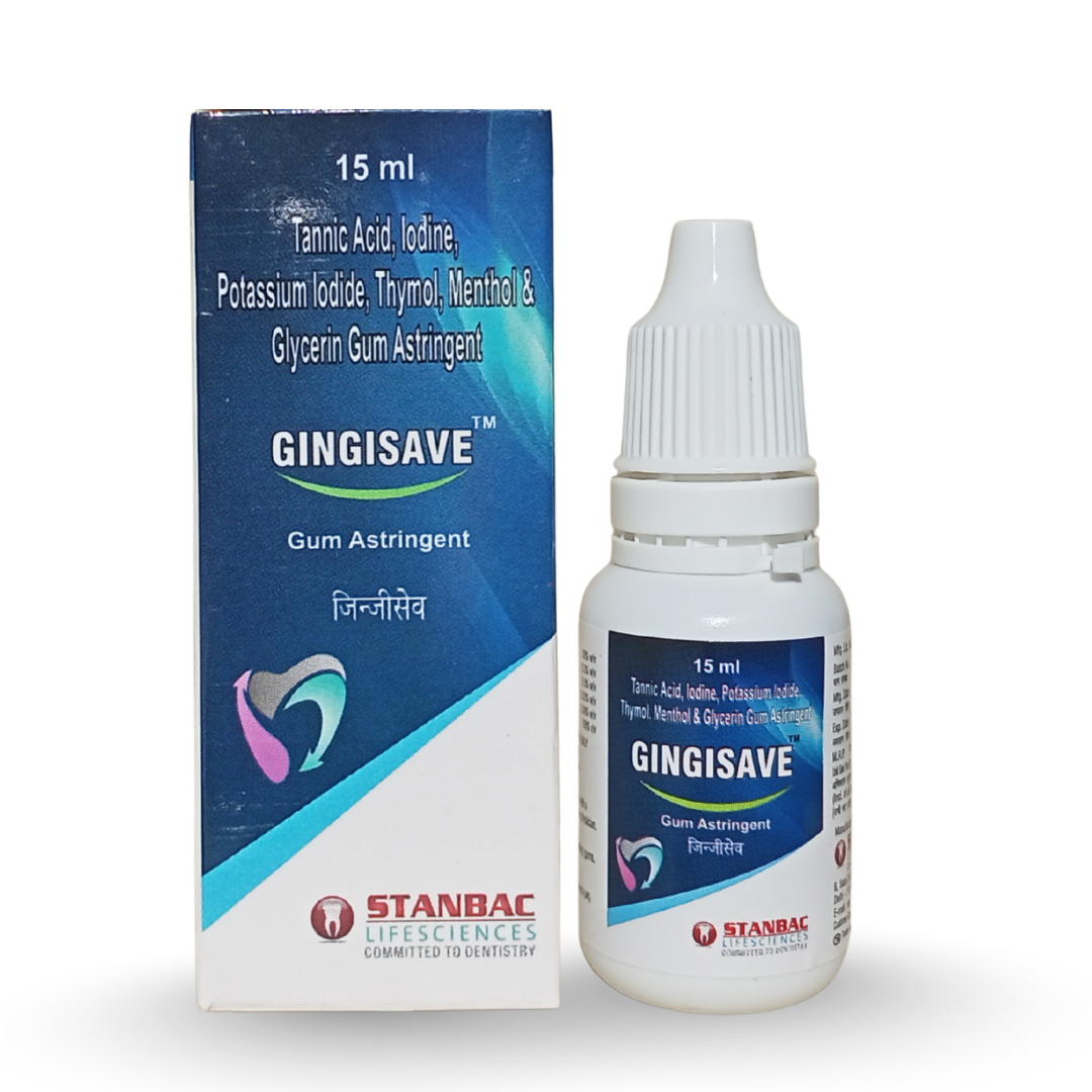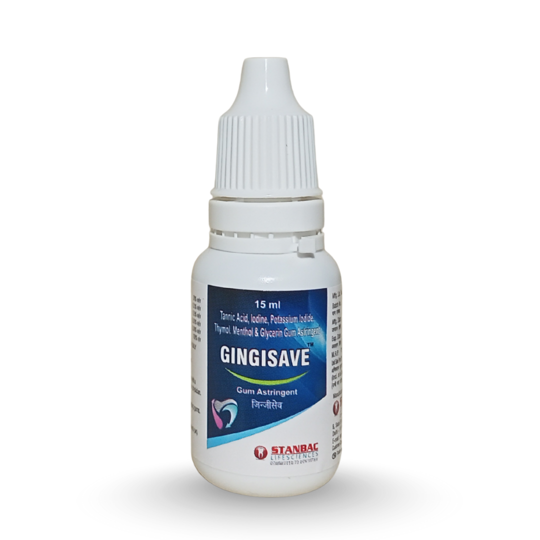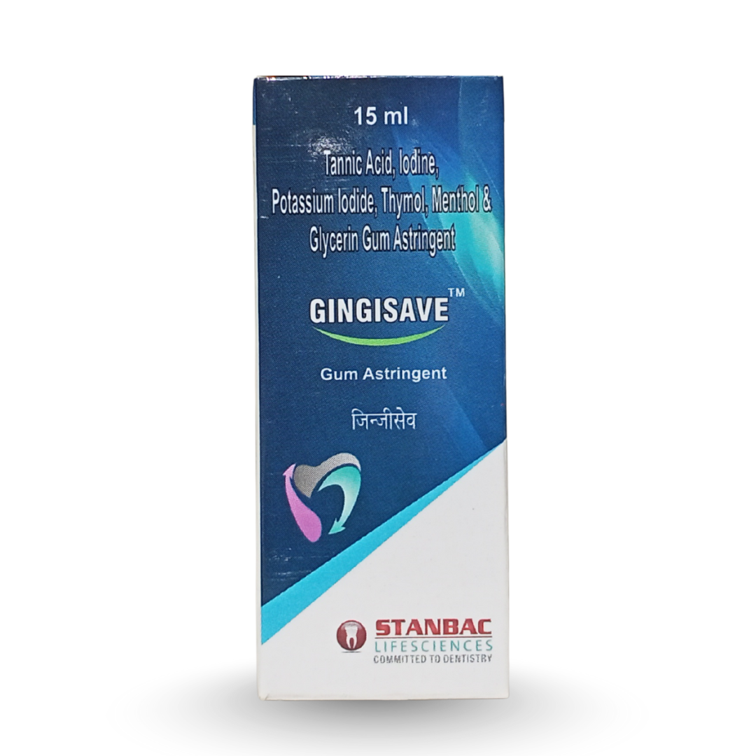 GINGISAVE™ is a specialized gum astringent formulated to provide relief from spongy, inflamed, and bleeding gums. Its unique blend of Tannic Acid, Iodine, and Potassium Iodide works as an astringent and antimicrobial, while Thymol and Menthol offer soothing, refreshing comfort.