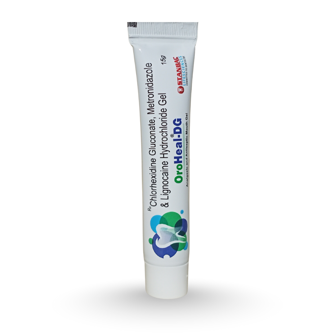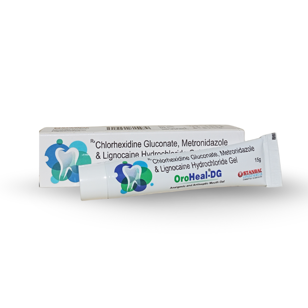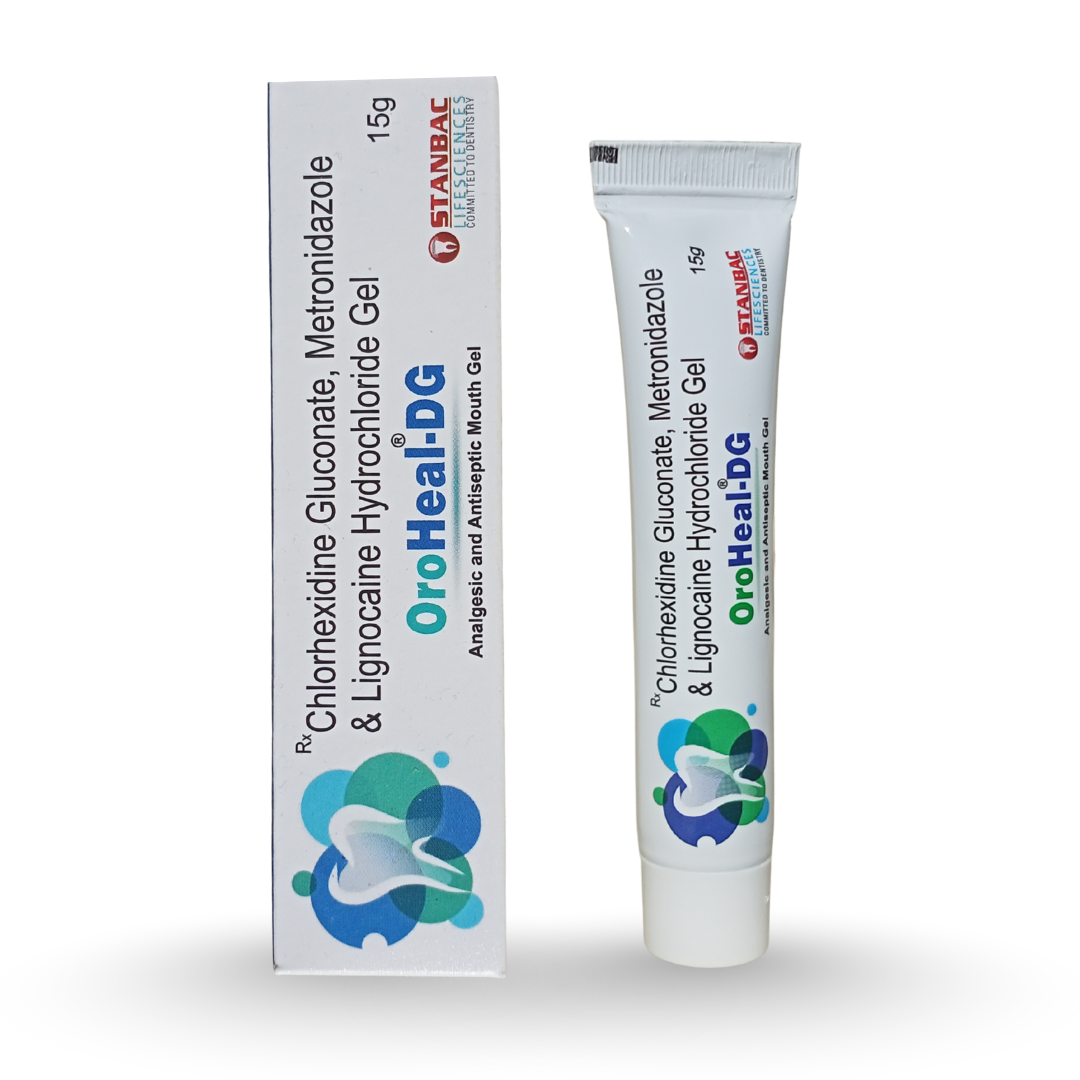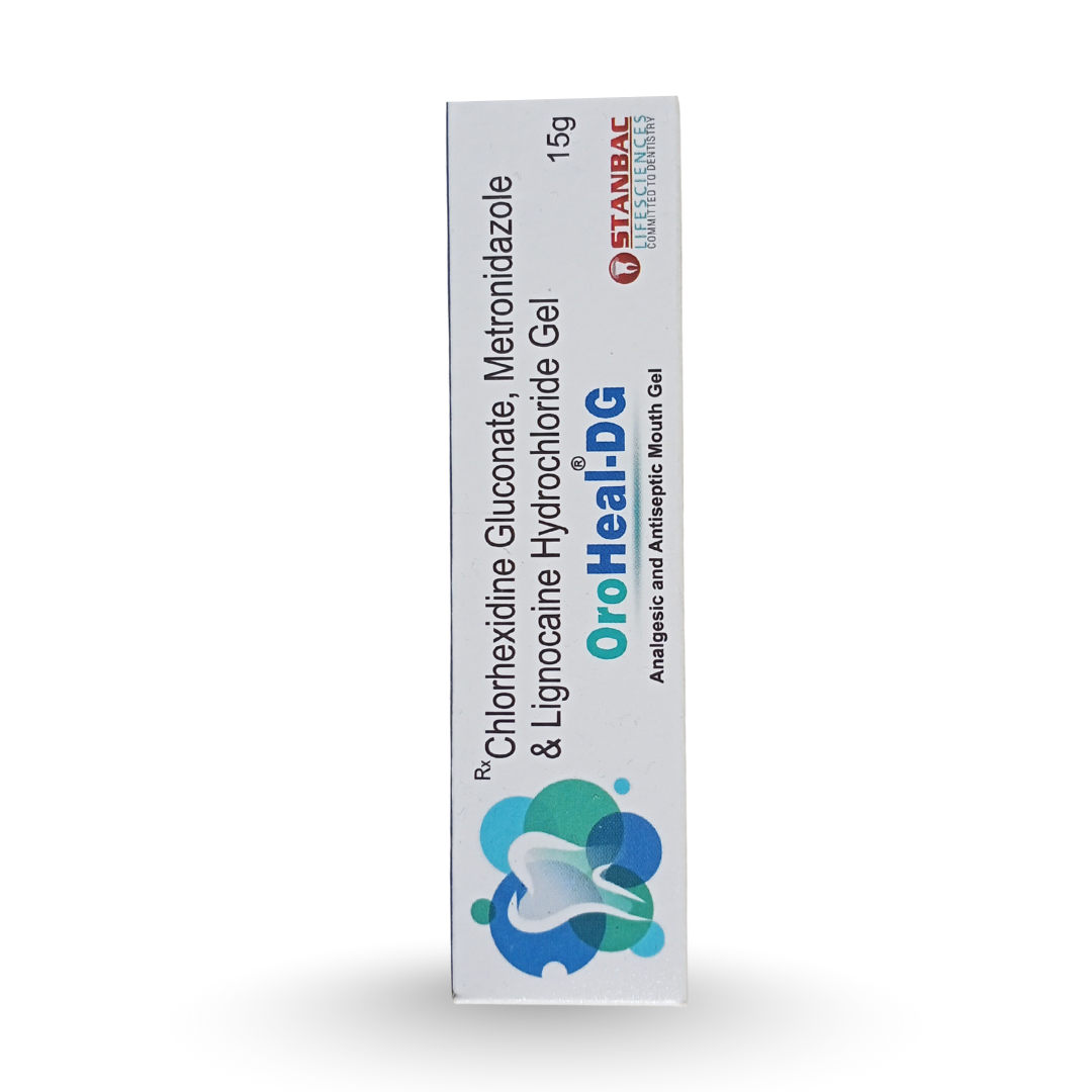 Oroheal-DG Gel is a specialized dental gel designed for the effective management of oral and gum infections. Its unique triple-action formula provides antimicrobial, anti-inflammatory, and pain-relieving benefits: